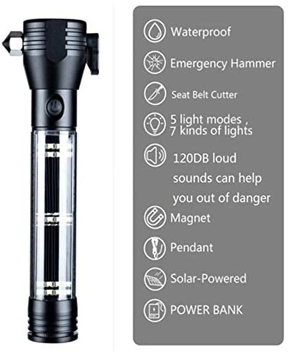 Special Offer Senter USB LED Tenaga Surya Portabel Lampu Senter Palu Keselamatan Dengan Power Bank Magnet Lampu Darurat Untuk Bertahan Hidup Discount (44%OFF) Today!