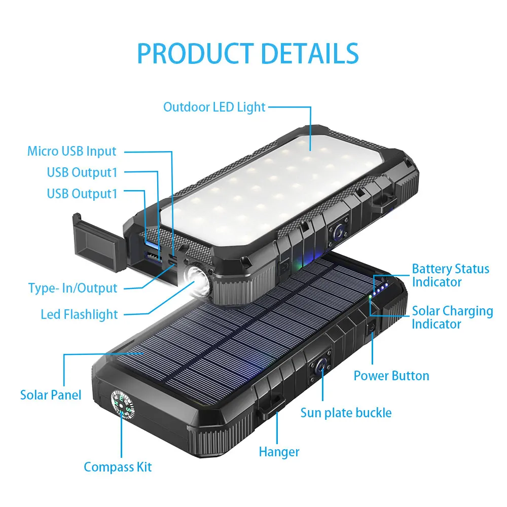 Special Offer PD 18W Charger Panel Surya QC 3.0 Bank Daya Pengisian Cepat, 20000MAh Baterai Eksternal Pengisi Daya Surya Portabel Dengan Lampu Kemah Discount (20%OFF) Today!