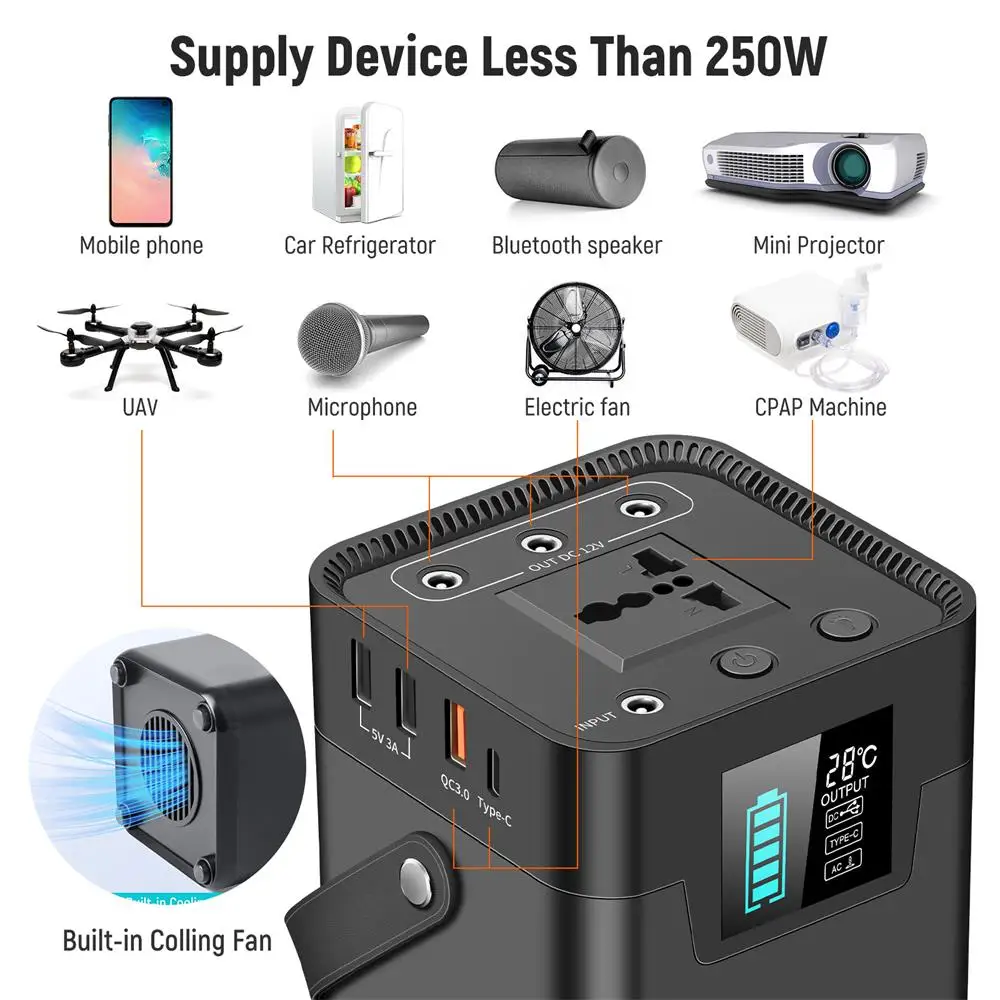 Special Offer 250W Pembangkit Listrik Portabel 110V Gelombang Sinus Murni Pengisian Cepat Generator Surya Baterai CPAP Senter Cadangan Pasokan Darurat Discount (51%OFF) Today!