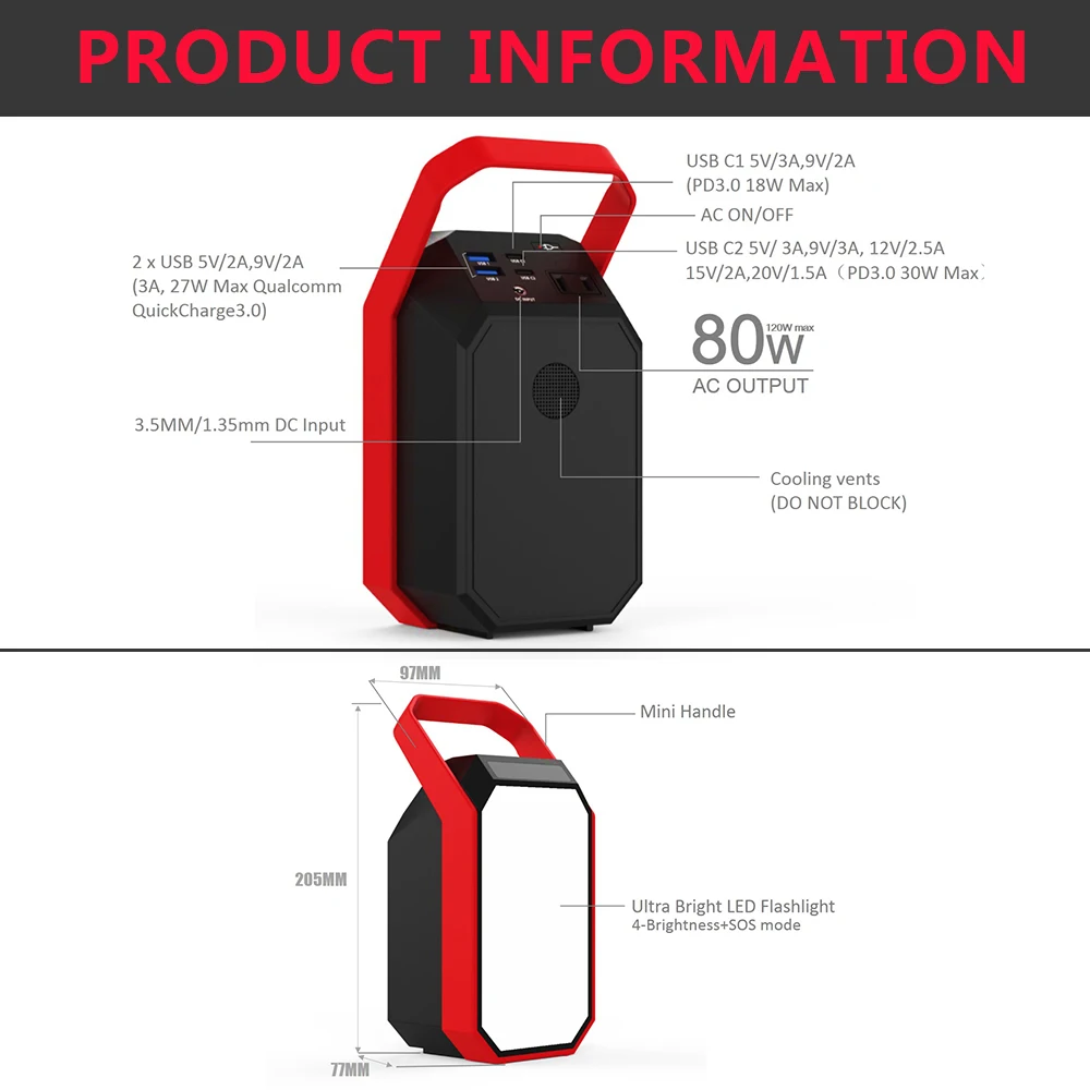 Special Offer 83.25wh Solar Power Generator 110V 220V-240V AC Outlet LED Senter Untuk Berkemah, Rumah, Darurat Discount (51%OFF) Today!